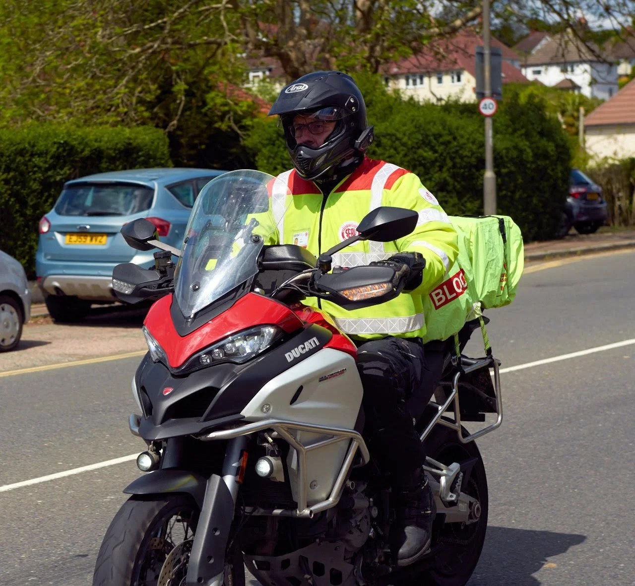 John volunteers as a Blood Biker: transporting blood, plasma, platelets, donor breast milk and urgent medical samples to hospitals in London