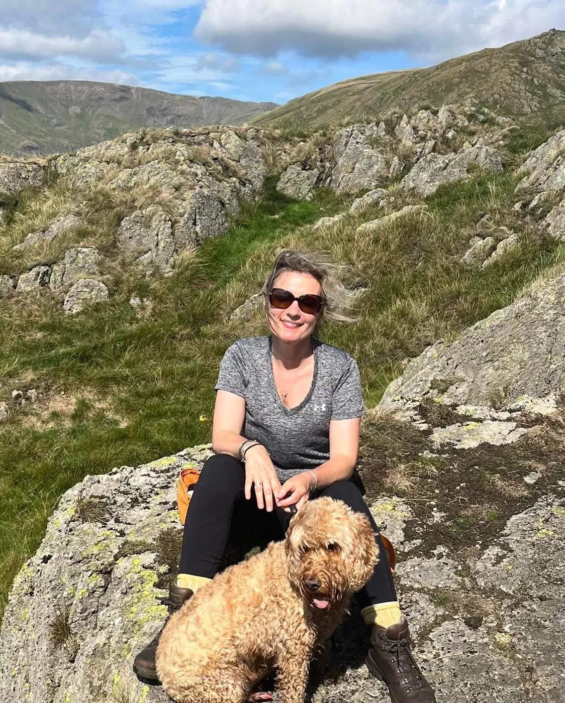 Fran hiking in the Lake District with her lovely dog, Alfie